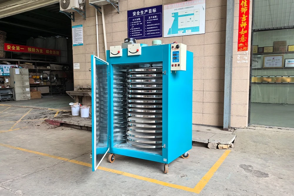 Mesin pengeringan teh berputar mempunyai 16 dulang penapis, diameter setiap dulang adalah 110 cm, kawasan pengeringan keseluruhan 14.6 m². Ia boleh memproses 20-25 kg teh basah setiap batch.